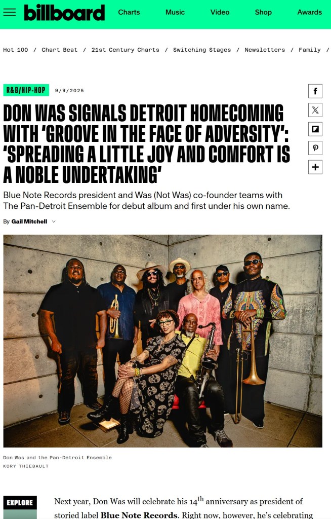 DON WAS AND THE PAN-DETROIT ENSEMBLE DEBUT LP GROOVE IN THE FACE OF ADVERSITY OUT OCTOBER 10